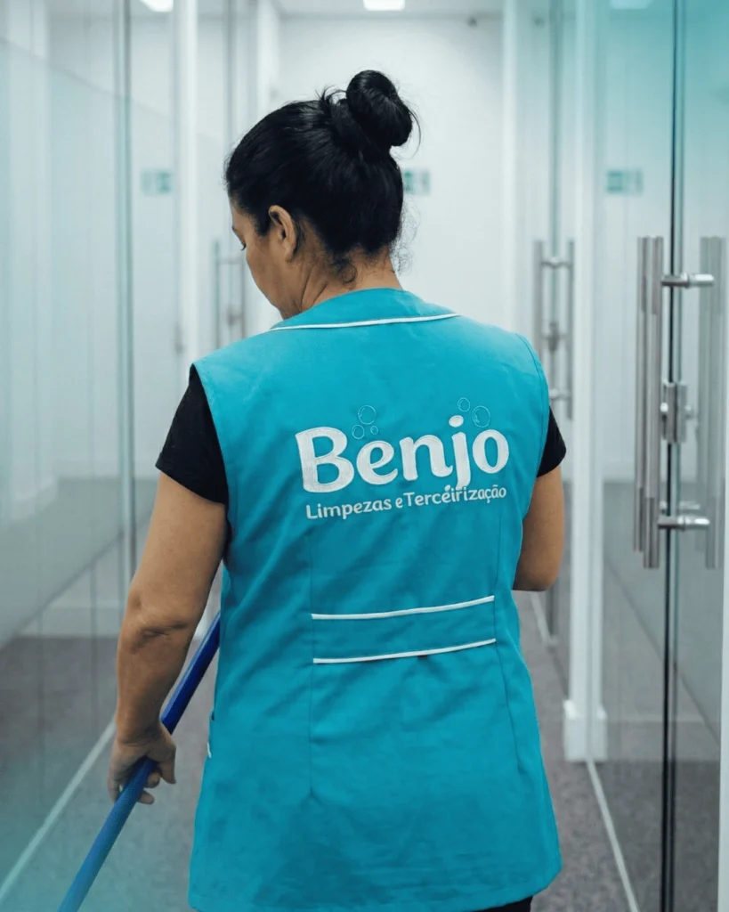 Não perca tempo gerenciando limpeza. A Benjo cuida da seleção, treinamento e execução do serviço para que você foque apenas no seu negócio. Oferecemos mão de obra qualificada para manter sua empresa ou condomínio sempre impecável, seguro e organizado.